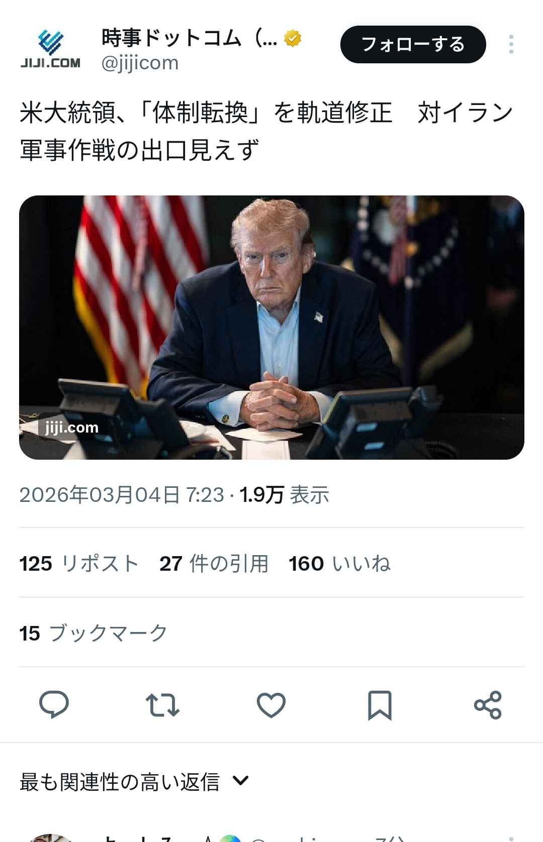 アメリカ「イランの体制転換ワンチャン無理かも」
