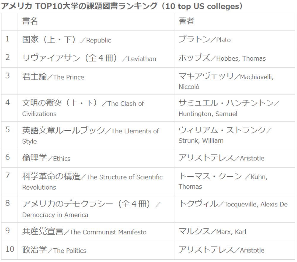 アメリカの上位大学で読まれてる哲学書TOP10……プラトンの『国家』が第1位。アホのニーチェは何位かというと…