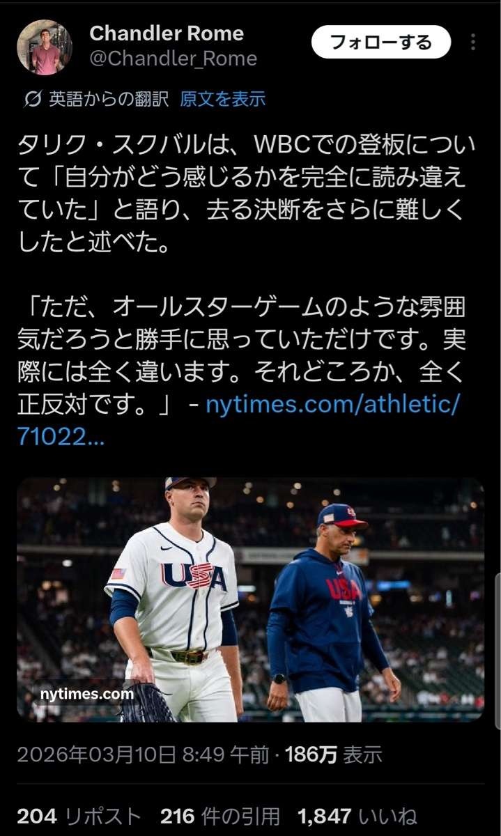 「もしこの試合が“WBCレギュラーシーズン最終戦”と銘打たれていたらアーロン・ジャッジはホームラン5本は打ってるだろう。でも実際は意味のある試合だからクソみたいなんだよ」