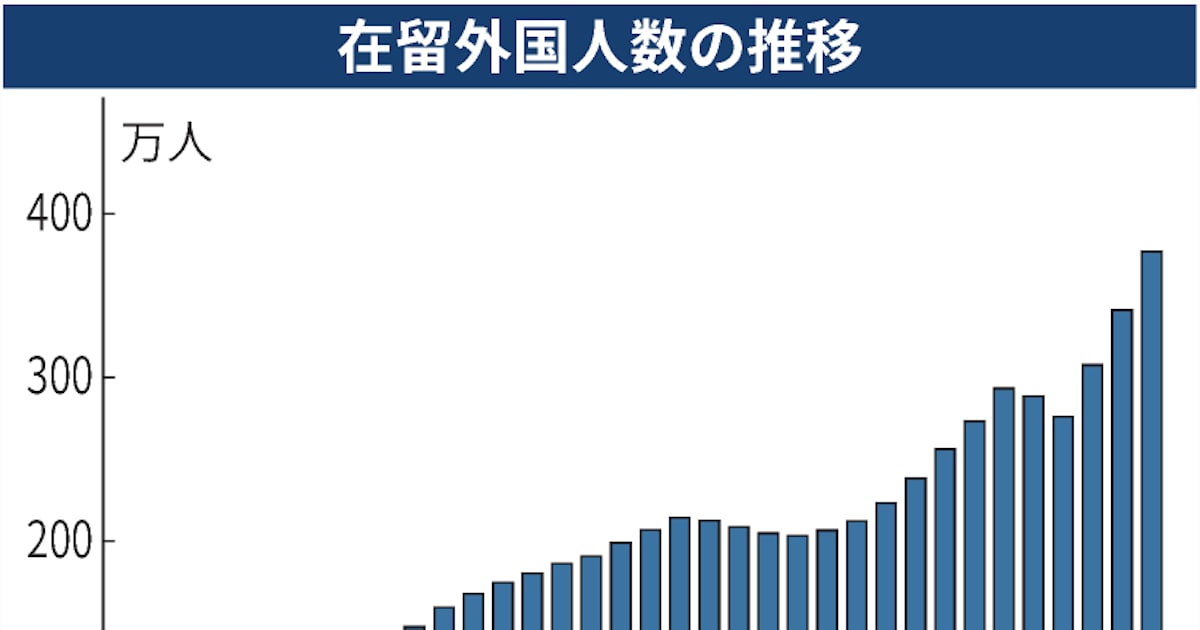 在留外国人とは 日本の総人口の3%、過半が20~30代 - 日本経済新聞▼在留外国人 就労や勉強のために日本を訪れ、中長期にわたり滞在する外国人。短期間で日本を離れる観光客などは含まれない。法務省の外局である出入国在留管理庁によると、2024年末時点の在留外国人数は約377万人と過去最高だが、日本の総人口に占める割合は3%にとどまる。年齢別に見ると、20代と30代が合わせて55.9%と、半...www.nikkei.com