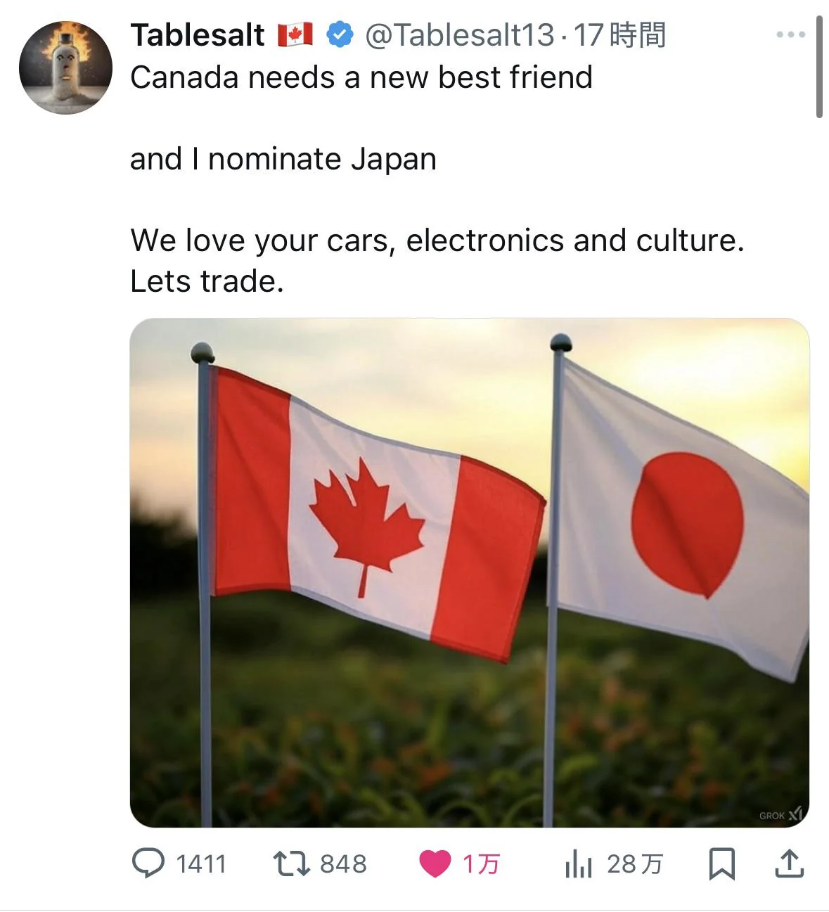 カナダ人「親愛なる友人。私たちは日本の車と電気製品と文化が大好きです😍」