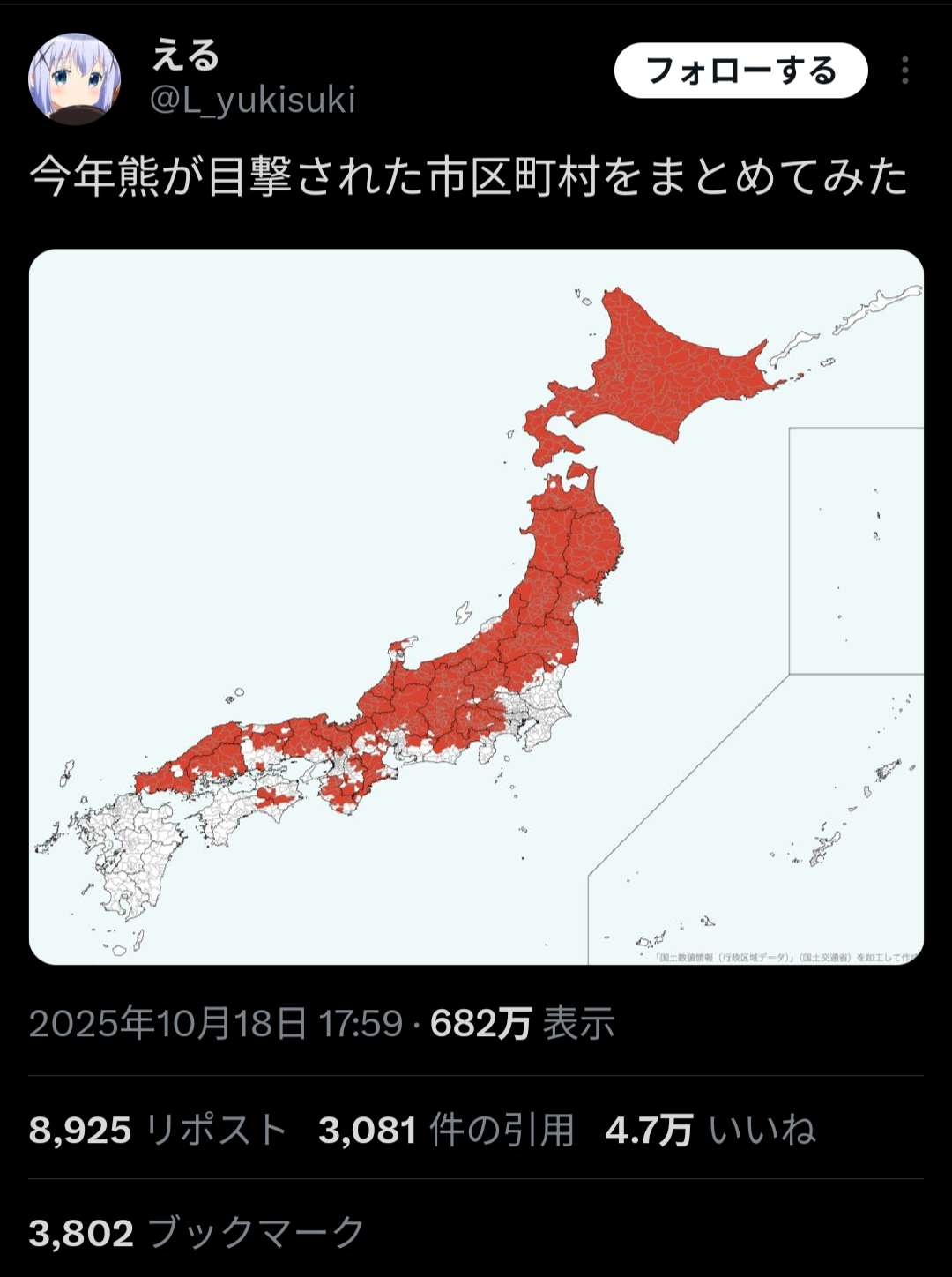 ちなみに千葉県も熊はいないらしい