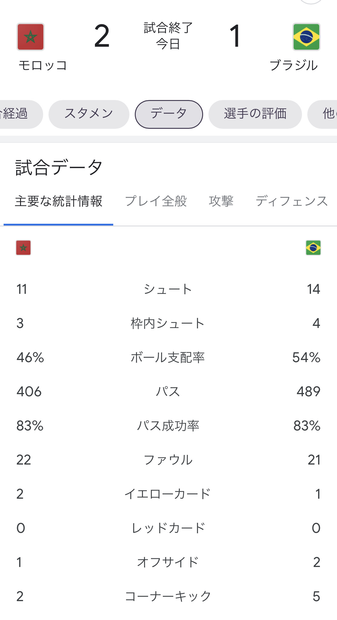シュート数11本と14本とかいい試合やな。日本対ウルグアイの塩試合とは雲泥の差や