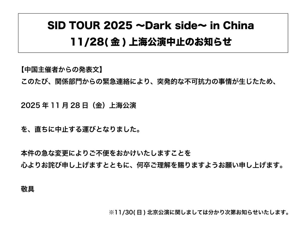 シドSIDさん、中国ツアー中止に追い込まれる!甚大な高市早苗被害がとどまることはない模様…どうすんのこれ?!