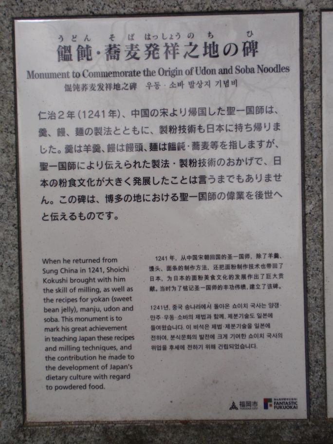 博多の承天寺に「うどん&蕎麦発祥の石碑」ある限り
