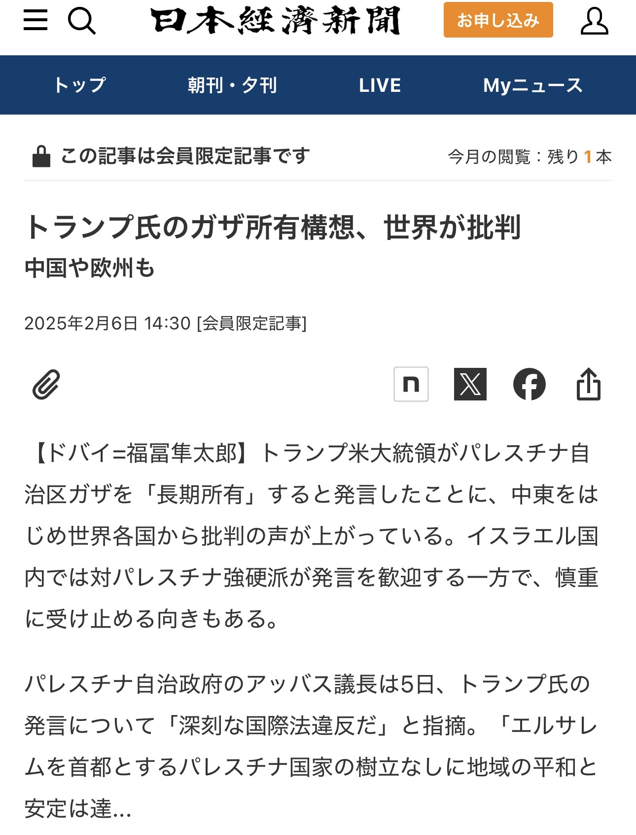 ガザ地区を米国が所有して住民は国外へ発言は完全に頭がおかしくなってるとしか