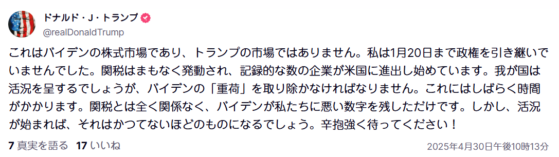 トランプも2年間はバイデンガーで乗りきる予定 - 63 : 2025/04/30(水) 22:27:10.58 ID:kEoqetr10