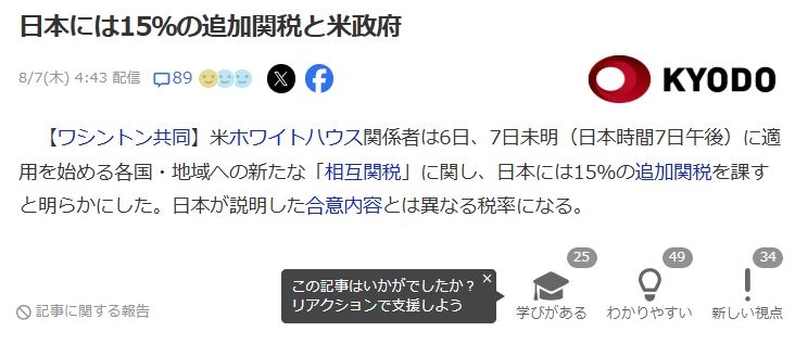 80兆円払えからの追加+15%関税なら