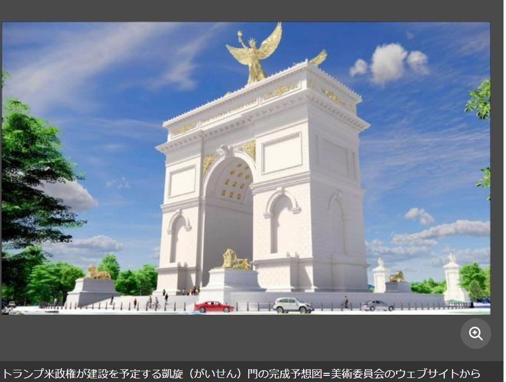 トランプ米政権は10日、建国250周年にあわせて首都ワシントンに建設する「凱旋(がいせん)門」の設計案を公表した。首都の景観にトランプ氏が自らの足跡を刻もうとする試みだが、景観を損なうとして中止を求める声が上がるなど、波紋が広がっている。
