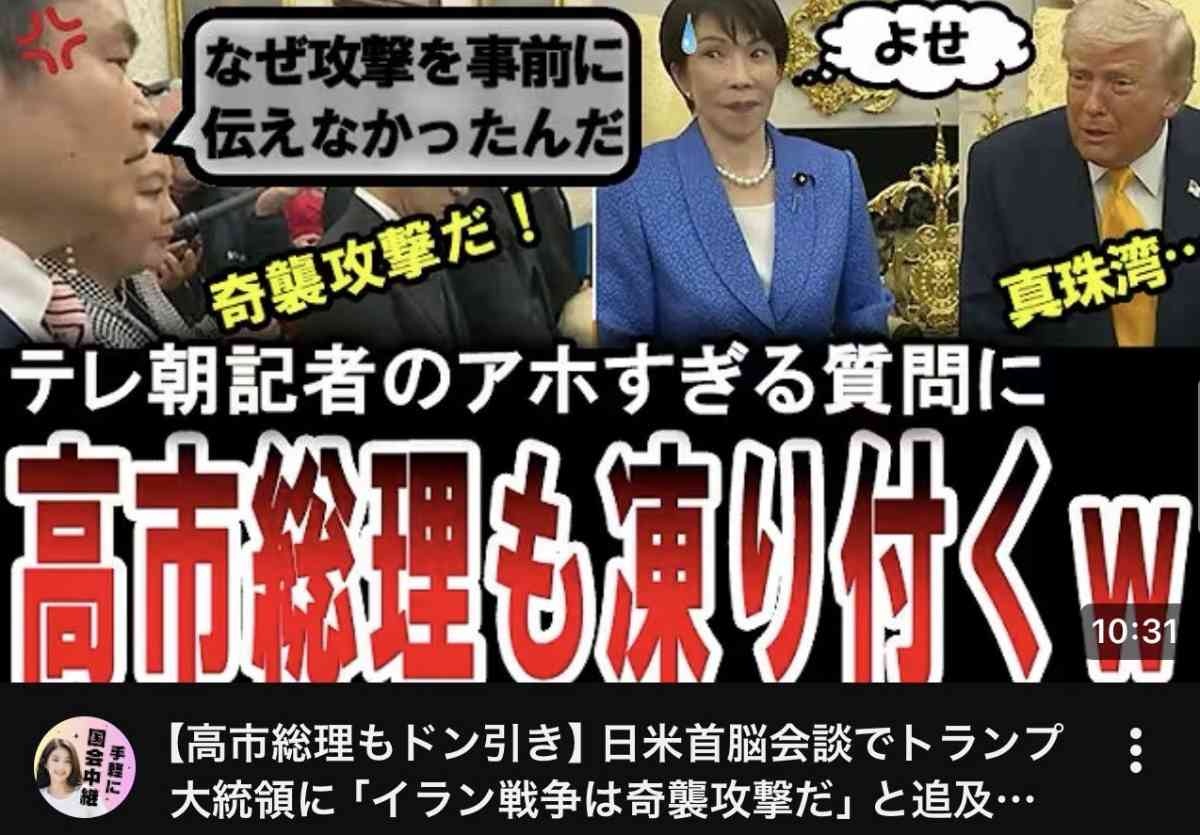 記者が悪かったところでトランプがパールハーバーに例えたことで宣戦布告なしの戦争と認めたことが世界に報道されてそれに全く反論しなかった高市もまた報道されてるんだけどどうすんの?