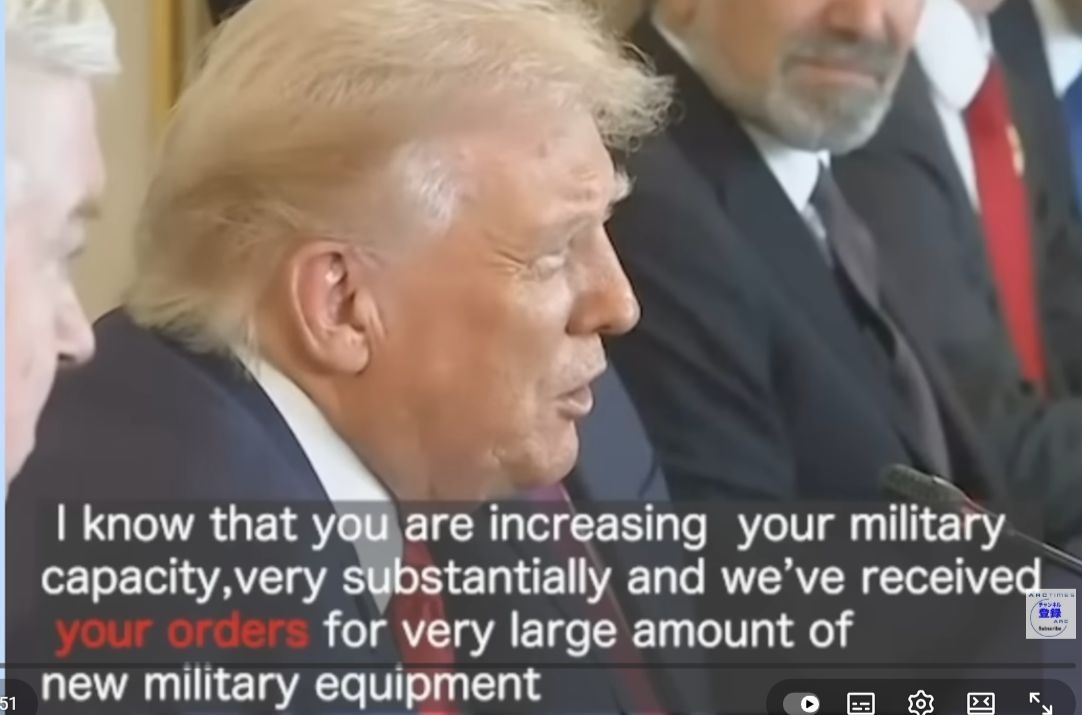 トランプ大統領「新規での大量の軍事装備品、兵器注文してくれて感謝」👈通訳がここだけ翻訳せず。NHK報道も日本語訳スルー判明