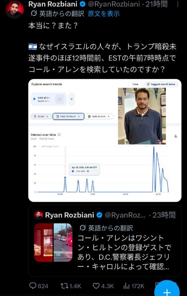 トランプ襲撃12時間前 イスラエルで容疑者の名前が検索されまくってた模様