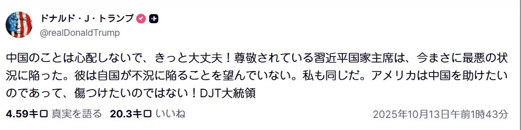 トランプTACOる、「中国のことは心配しないで、きっと大丈夫!」