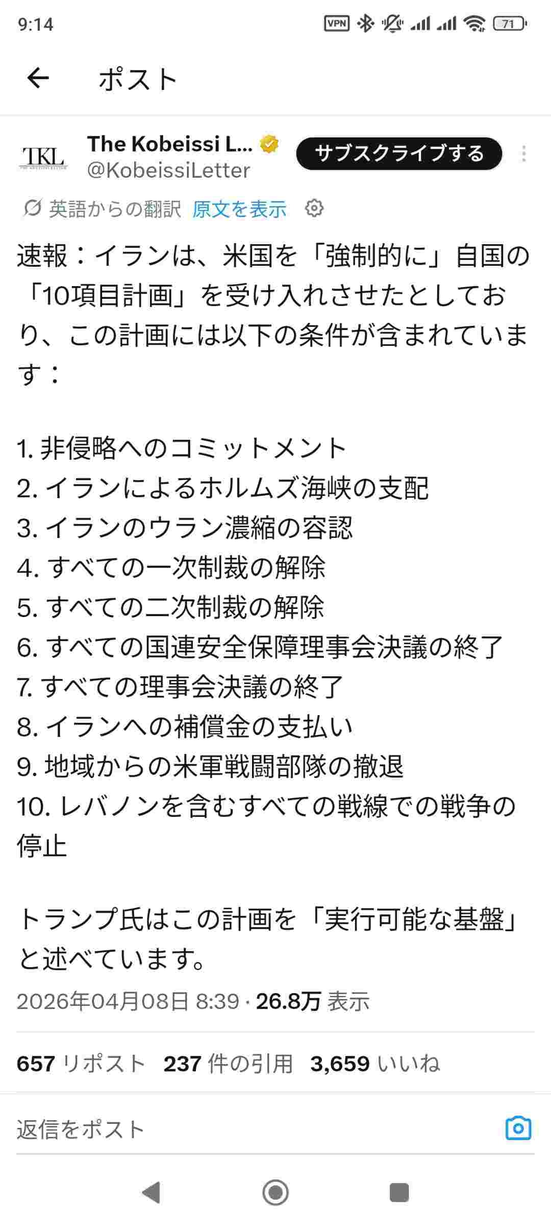 ドナルド・トランプさん、イランが要求した10項目を受け入れる
