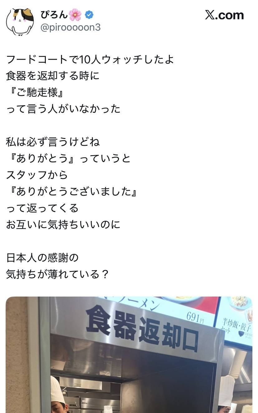 でもこのひとフードコートを監視していないしフードコートで感謝の言葉も言った事ないんだよね…