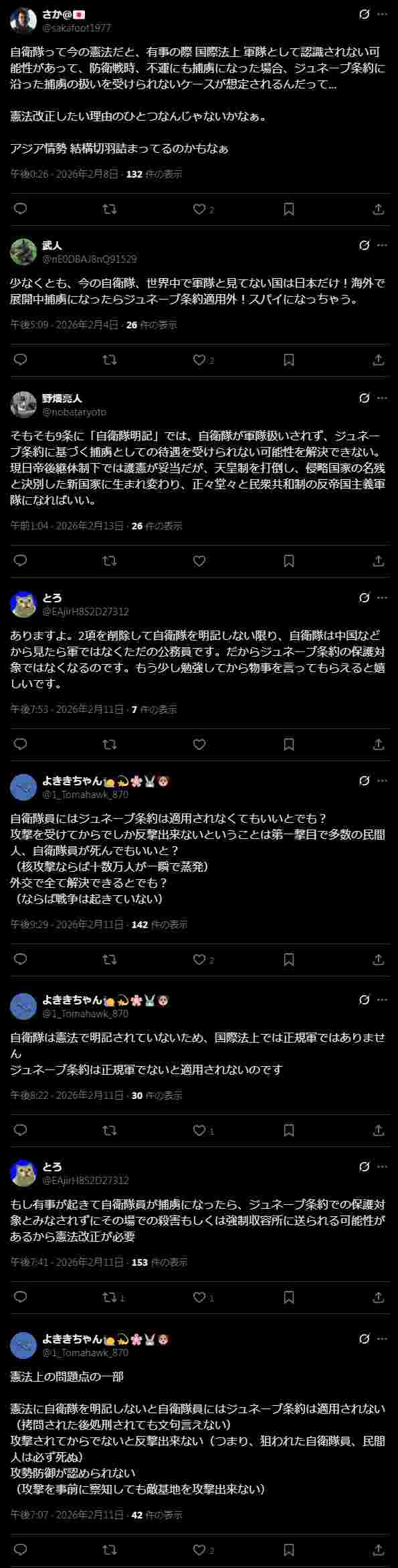 南京大虐殺の論争でゲリラには適用されないとか散々言いまくっておいて、自衛隊がゲリラと同じだと言いたいのかコイツラは?