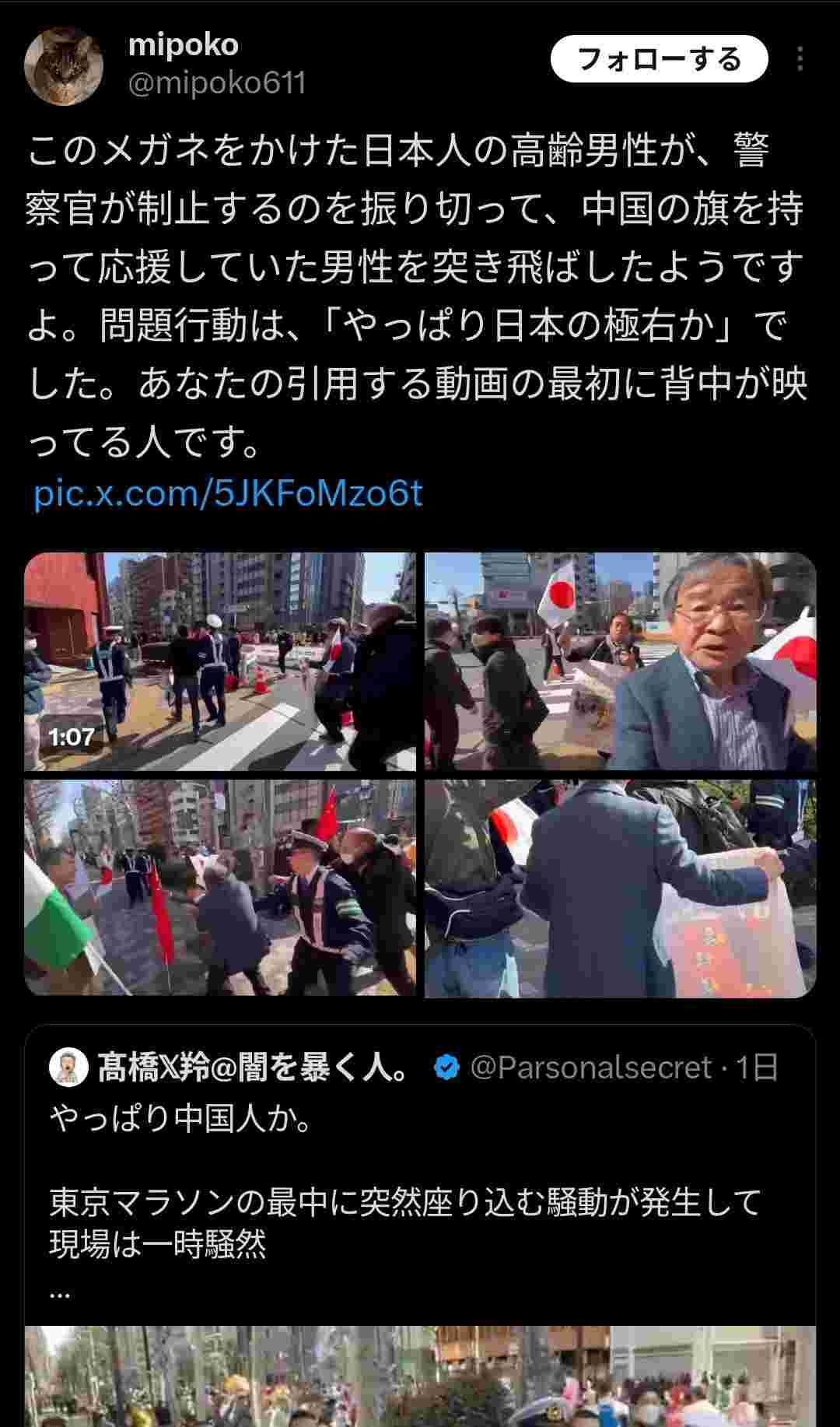普通の人間は国旗持ってマラソンの応援なんかしない