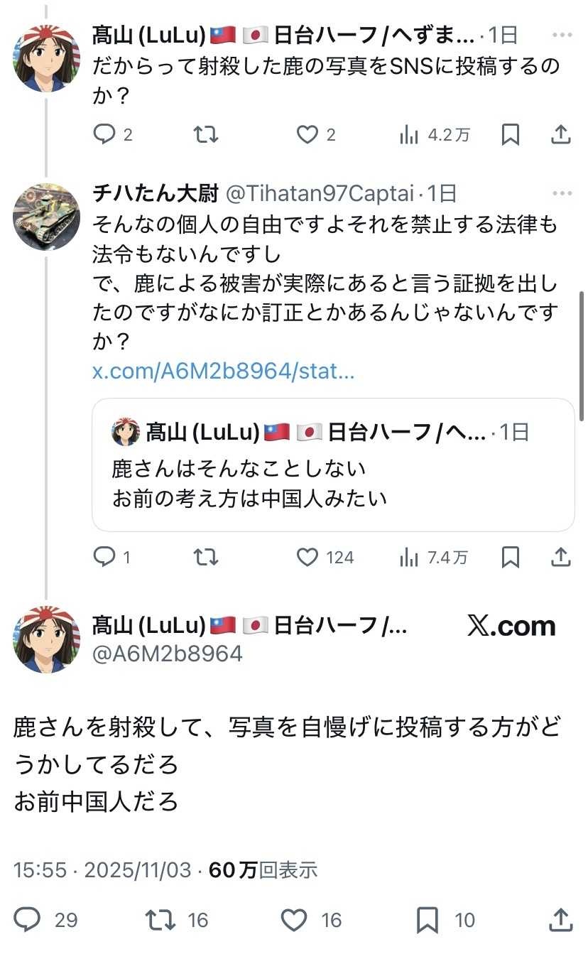 日本人よりクマ鹿ファーストの奴って先祖人間じゃなくて害獣なんか?