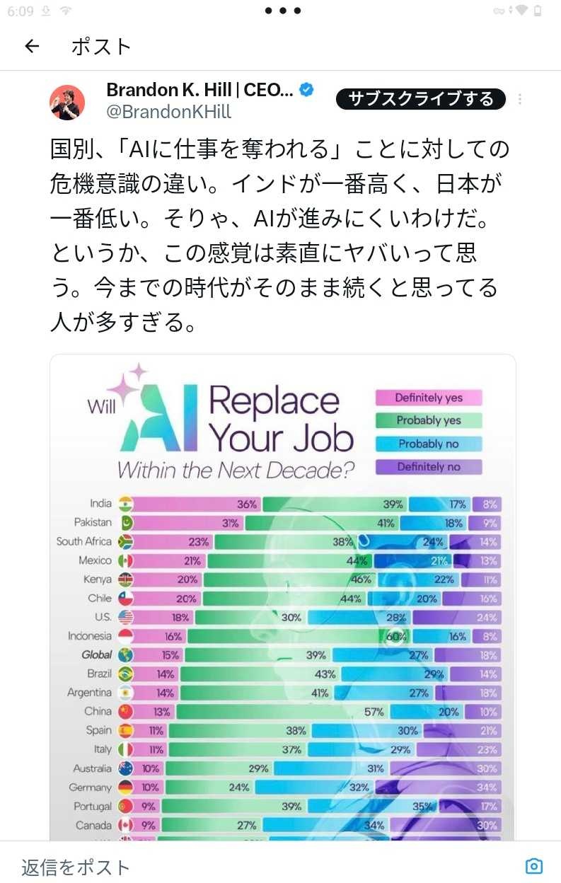 バカタレ国民、世界一AIに仕事を奪われないと思ってる