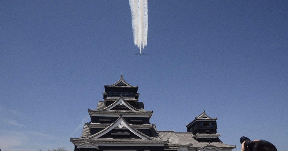 https://mainichi.jp/articles/20260412/ddm/041/040/117000c熊本地震の発生から10年を迎えるのに合わせて、航空自衛隊のアクロバット飛行チーム「ブルーインパルス」が11日、熊本城(熊本市)の上空を展示飛行し、犠牲者への追悼や復興への感謝の思いを届けた
