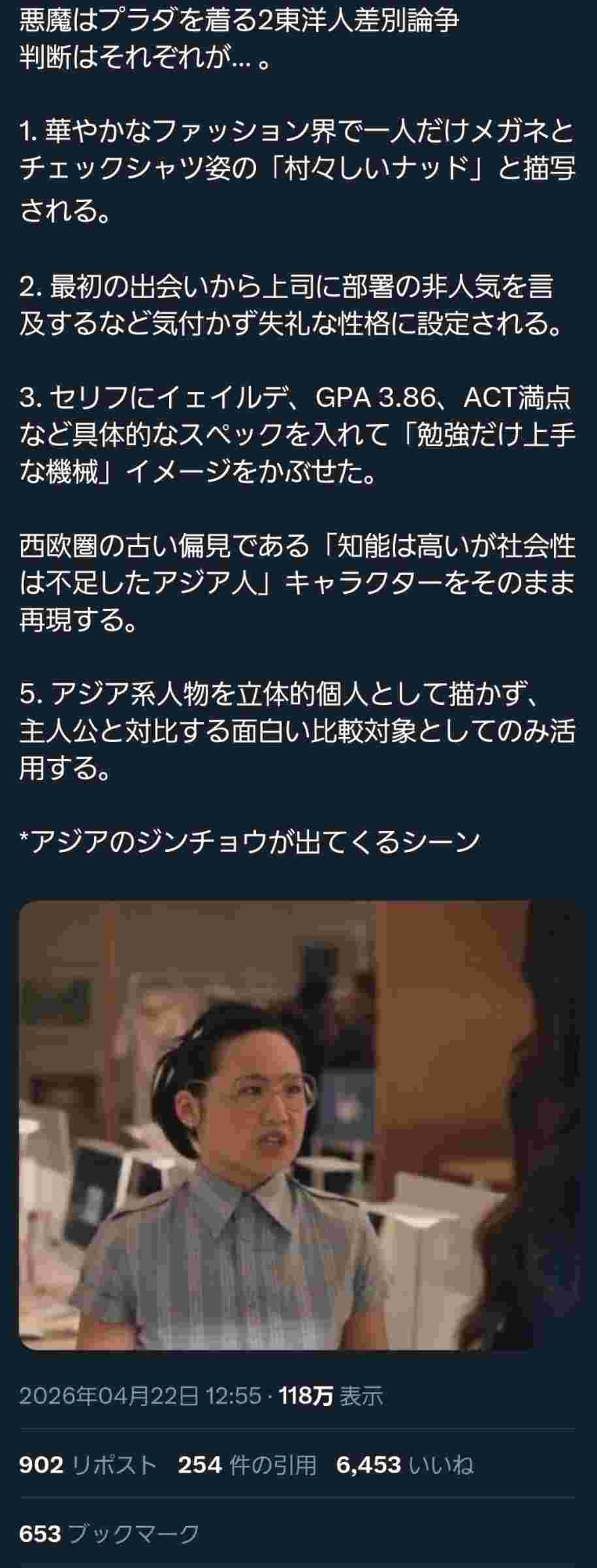 アジア人全体のステレオタイプだと受け取るほうがおかしいだろ