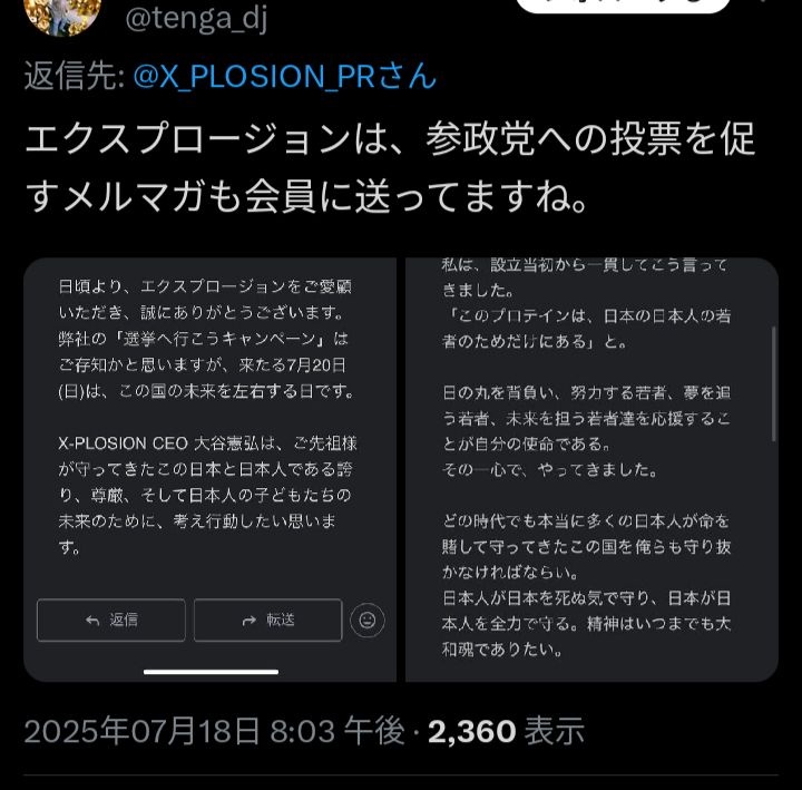 エクスプロージョンは筋トレ界隈というかプロテインメーカーでマジで有名な所だぞ