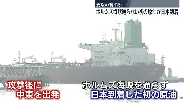 アメリカなどによるイランへの攻撃後に中東を出発し、ホルムズ海峡を通らず日本に来た初めての原油が29日、愛媛県の製油所に到着しました。