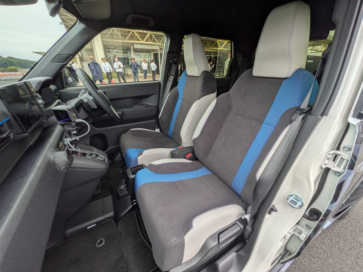 詳細なスペックはまだ明かされていないが、ショーカーの「Super-ONE PROTOTYPE」が装着していたタイヤ&ホイールサイズは205/45R16。そして今回、試乗するプロトタイプ(?)が装着していたのは185/55R15。ベースとなるN-ONE e:が装着しているタイヤは155/65R14だから、フェンダーまわりがかなり豊かになっていることは見た目からしても明らかだ。