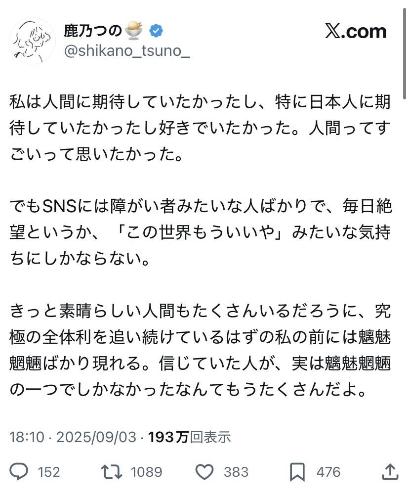こう言う叩ける人間をここぞと叩いてるやつらは障がい者と言わんけど