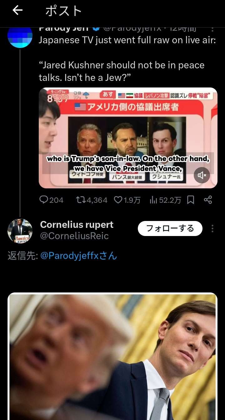 ユダヤ人がどうのこうのは置いといてクシュナーがヨルダンで嘘交渉で騙し討ち斬首作戦の肝になったのは確かじゃん