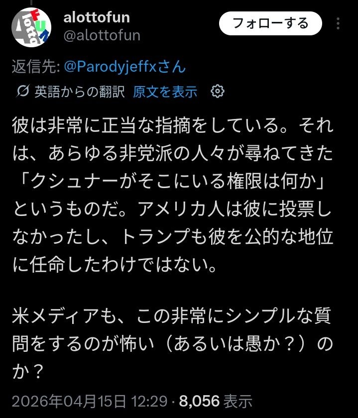 そうそうクシュナーがさぁ!