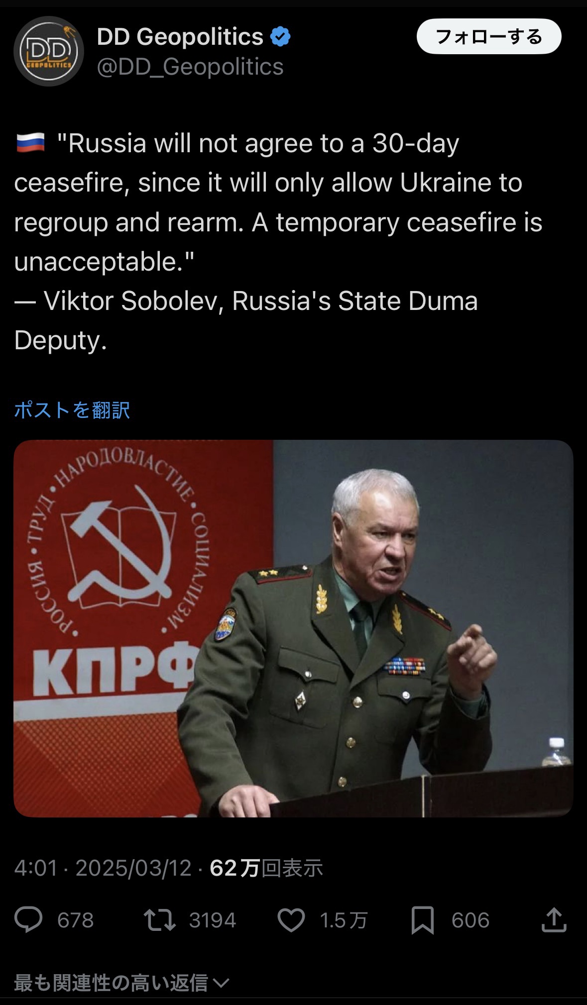 ウクライナを地上から消せる千載一遇のチャンスに停戦するわけないじゃん