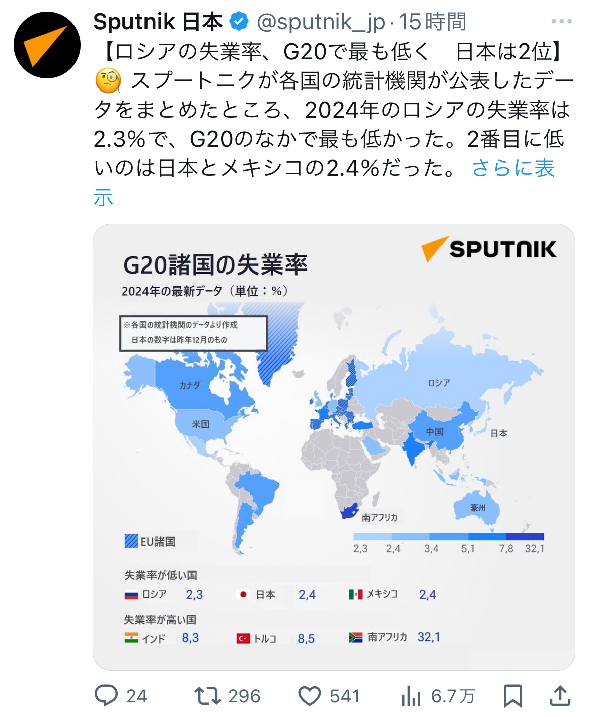 ロシアの失業率がG20の中で最低になる。一体なぜ…