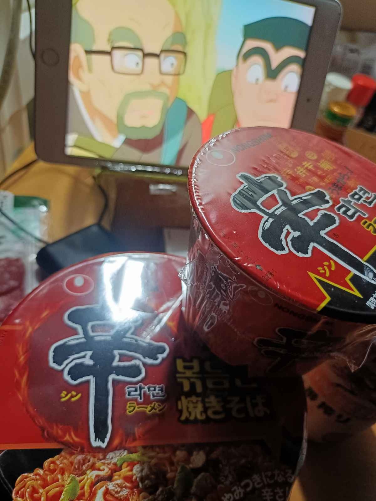 ちな今も目の前に辛ラーメンミニと辛ラーメン焼きそばがあんねん