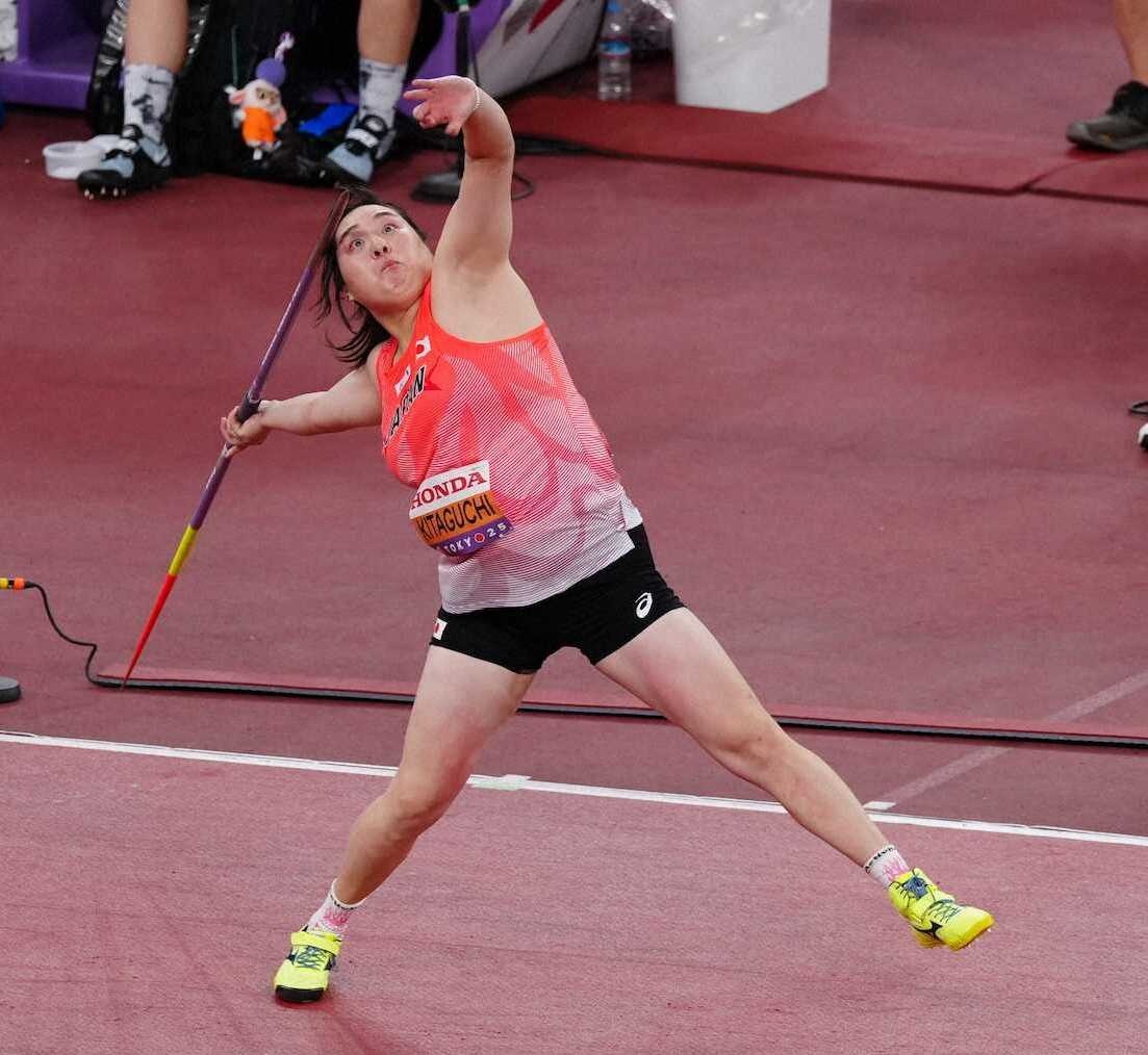 ◇陸上 世界選手権東京大会第7日 女子やり投げ予選(2025年9月19日 国立競技場) 女子やり投げの予選が行われ、昨夏のパリ五輪金メダルで日本女子初の大会連覇がかかる北口榛花(27=JAL)が登場。3回の試技を経て進出ラインの62メートル50を超えられず、決勝進出の行方はこの後に行われる予選Bの結果待ちとなった。