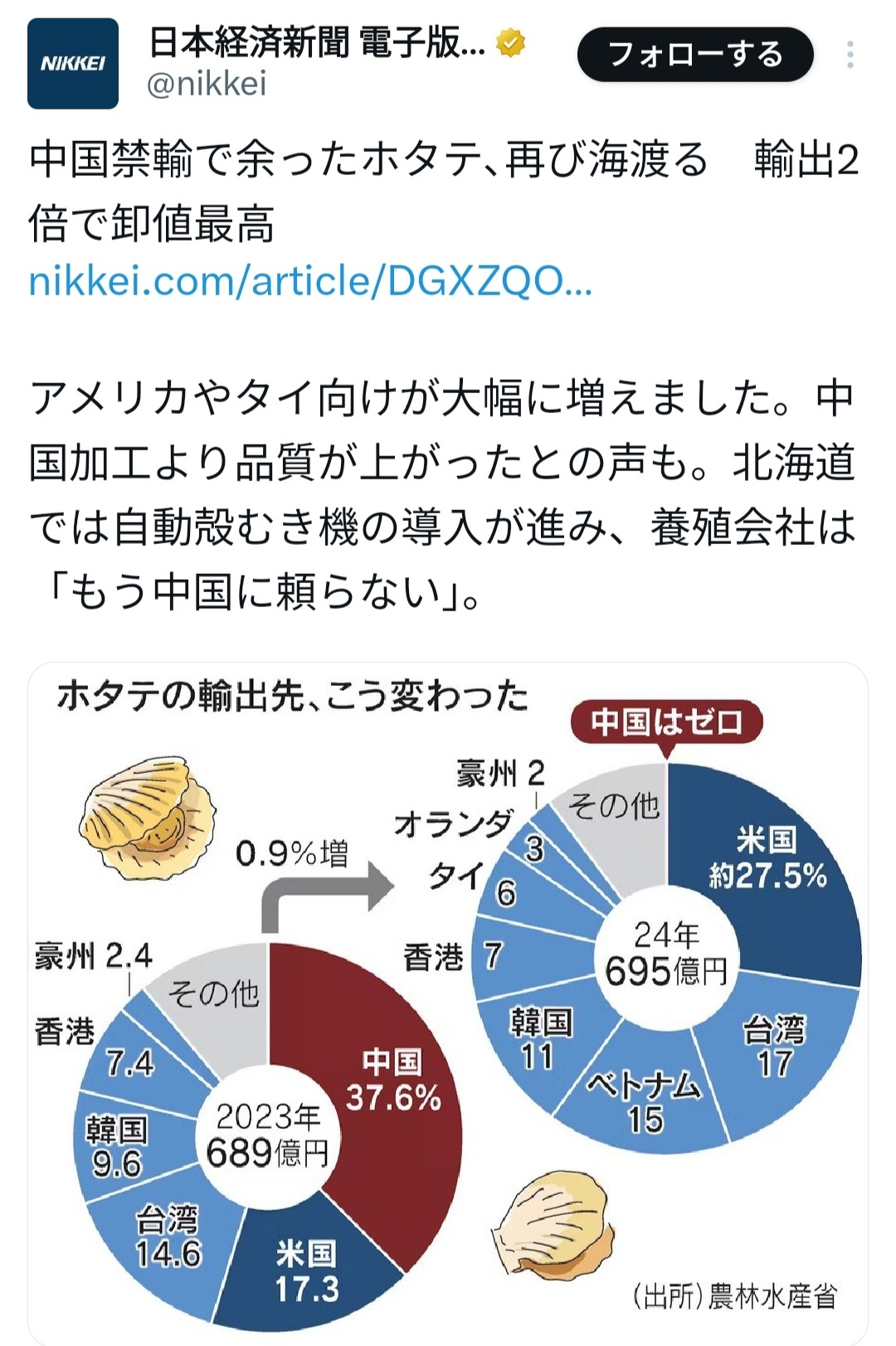 先進国アメリカ台湾韓国のおかげでホタテ御殿が維持できるな🤗
