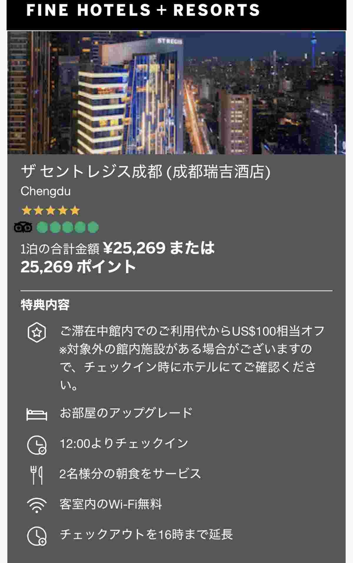5つ星ホテルで100ドルクレジットと朝食と16時チェックアウトが付いて2万円