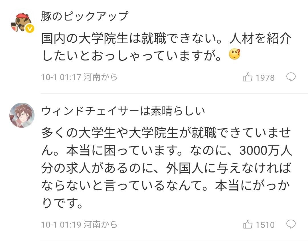 「なぜ国内の院卒・大卒を雇わないのか」 外国人の技能労働者呼び込みへビザを新設、若者からは不満の声 中国(CNN.co.jp) - Yahoo!ニュース(CNN) 中国政府は科学技術分野の若い専門家を引き付けるために新しい査証(ビザ)を導入したが、高学歴の若者が職探しに苦労している国内では激しい反発が起きている。 中国当局は、今月1日に導入されたnews.yahoo.co.jp