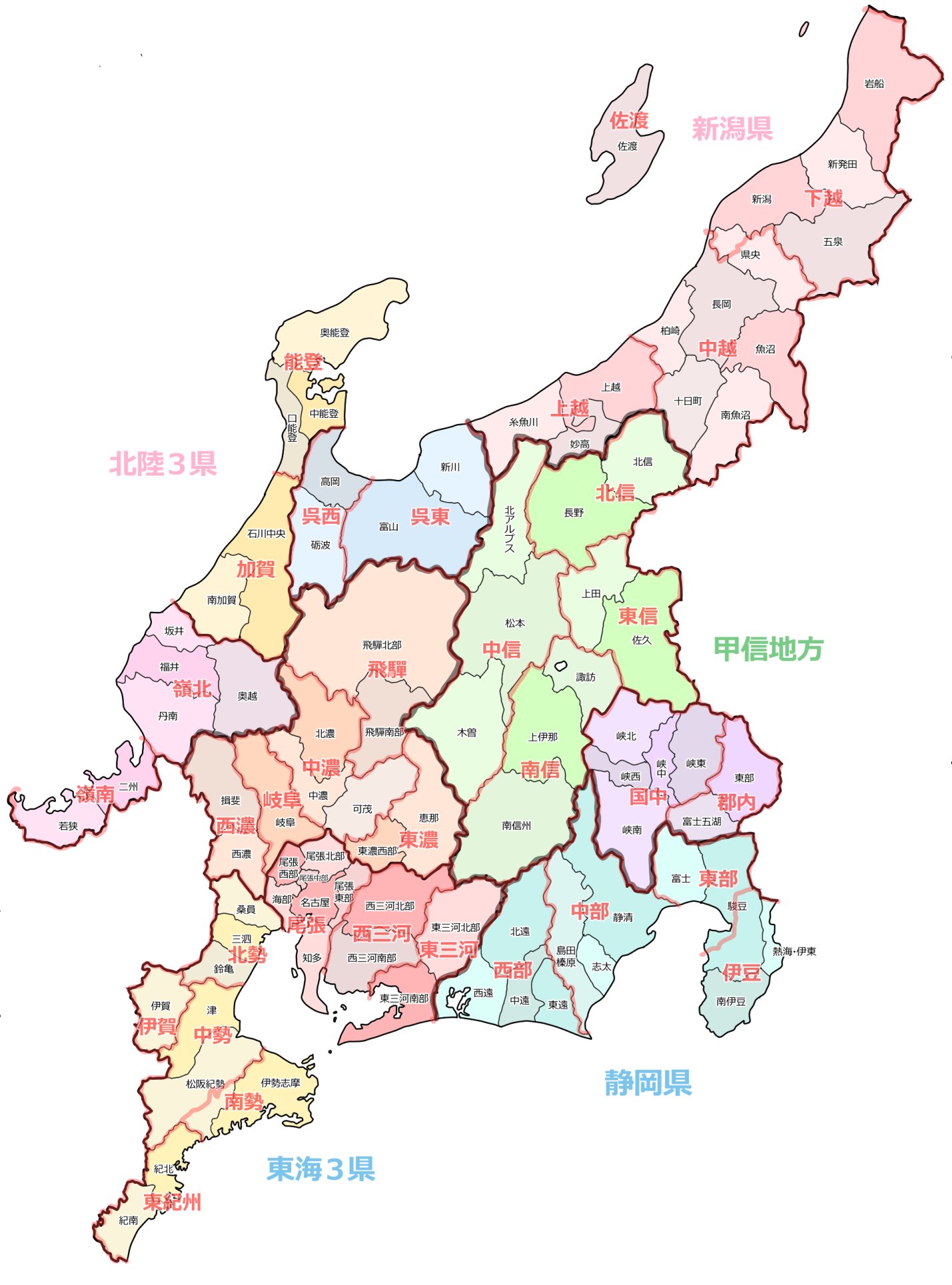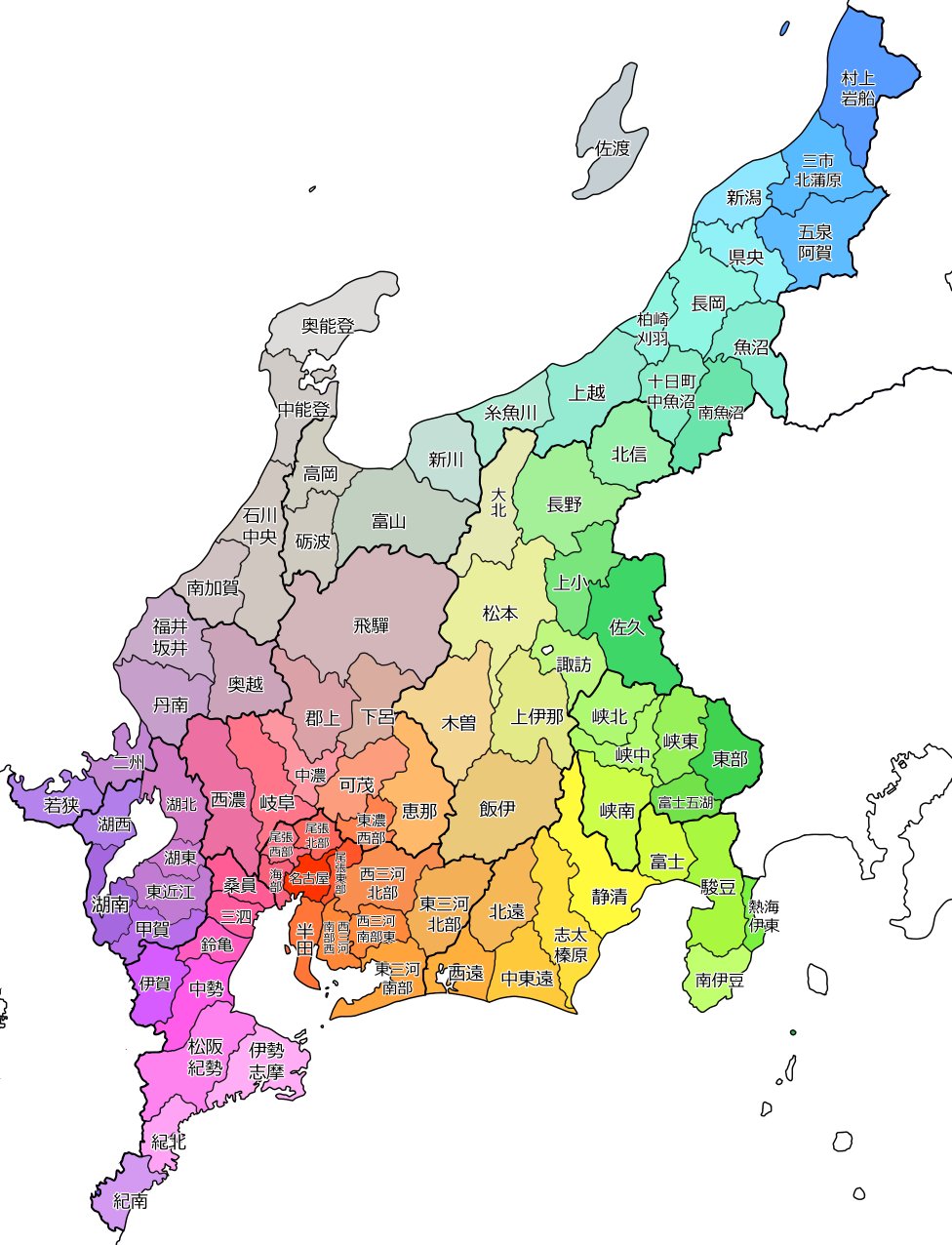 中部地方って関東と関西の間のところこの辺中部ねってノリの括りだからしゃーない