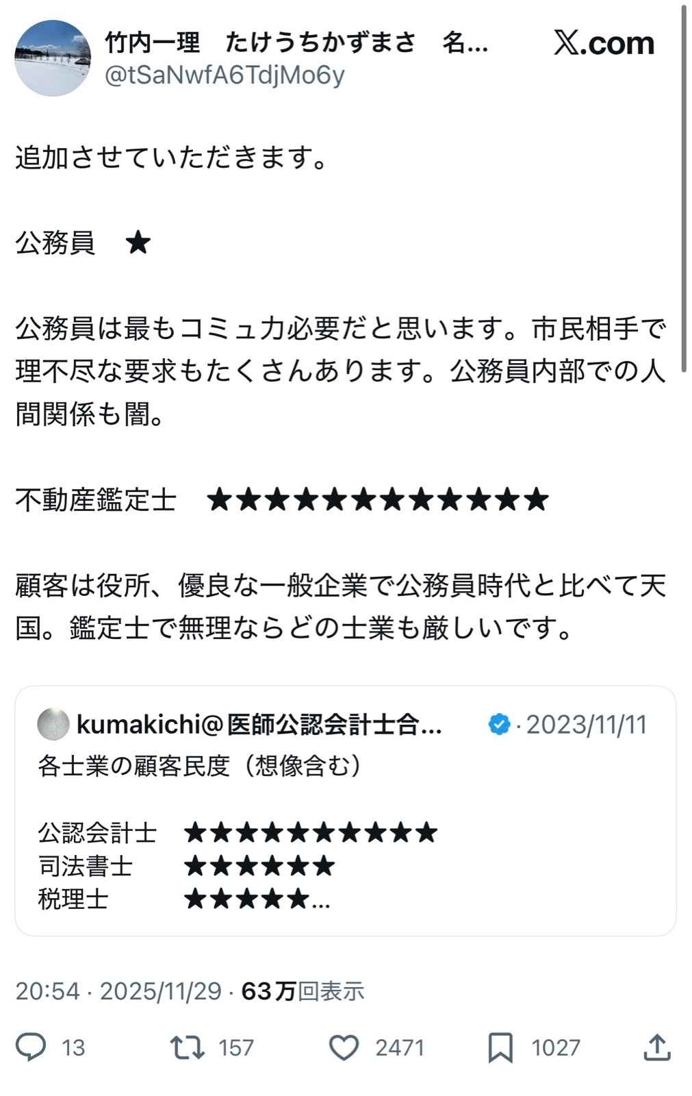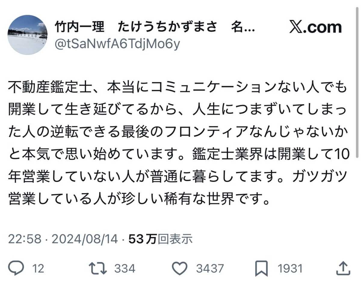 不動産鑑定士はAIとかで消える可能性あるでしょ。まぁギルド型だから他の士業のように必死に抵抗するだろうけど