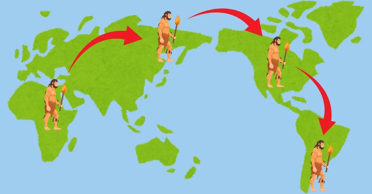 それから長い年月を生まれ故郷で過ごした後、約6~7万年前に人類の祖先はアフリカを飛び出て、世界各地に拡散を始めました。