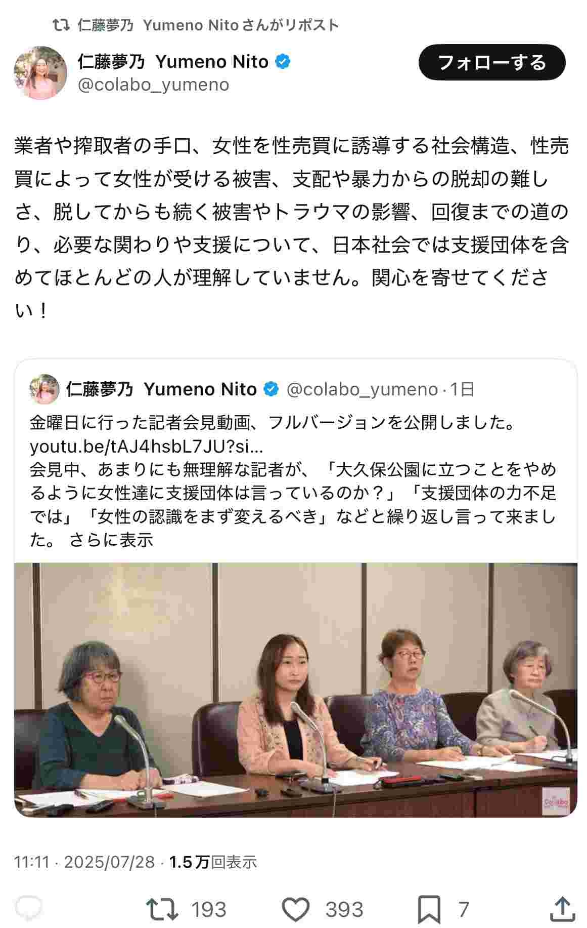 でも立ちんぼは実名顔出し報道されて買った側は職場の写真が映るだけで名前も顔も出ないってのは報道のおかしい点だわな
