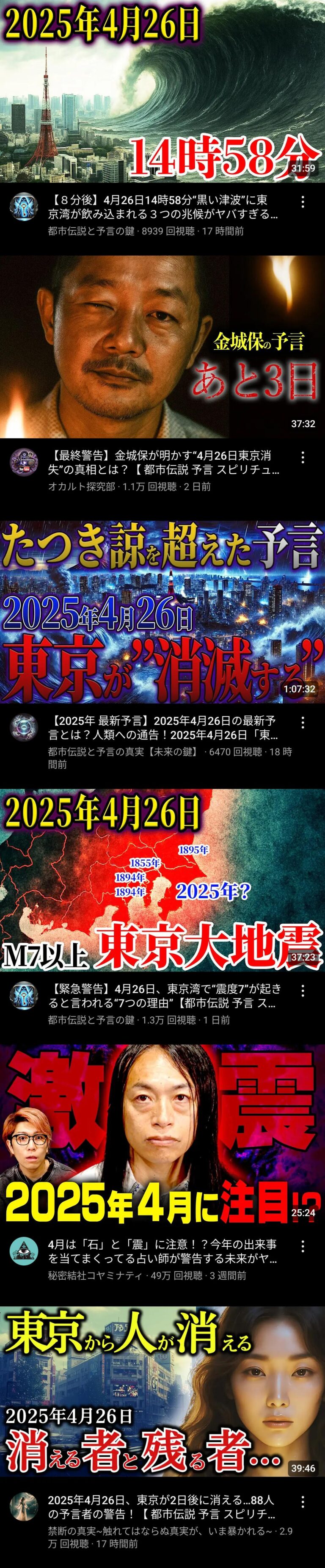 多くの場合、このような終末論はインターネット上の噂や憶測に基づいていることが多いです。過去にも様々な終末予言がありましたが、現実には起こっていません。