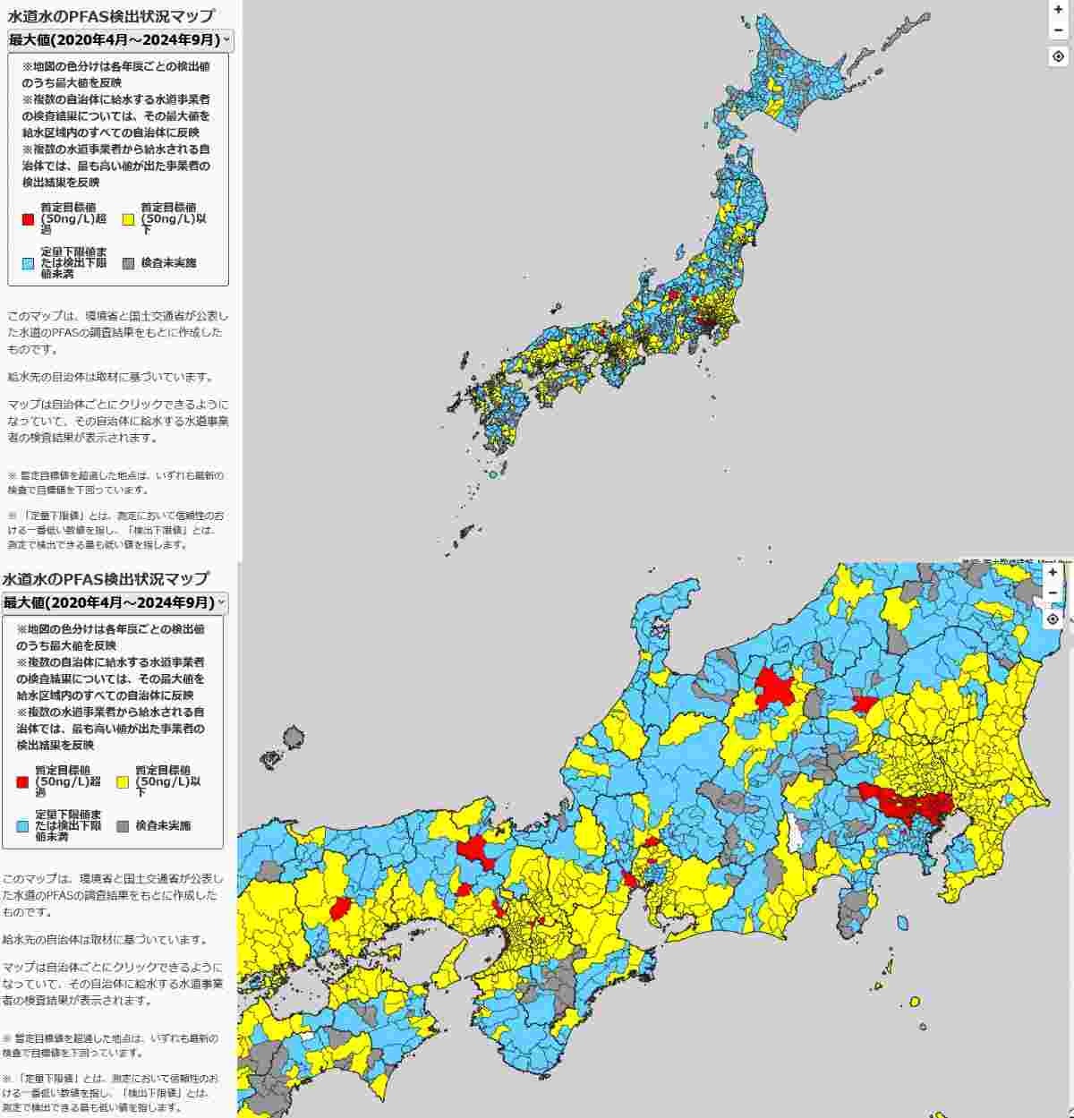NHKのPFASマップは水道事業単位だから東京都水道局管理下の市区町村は水源・取水・浄水の場所に関わらず全部同じ色