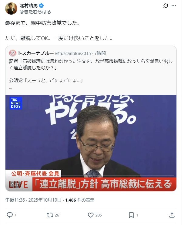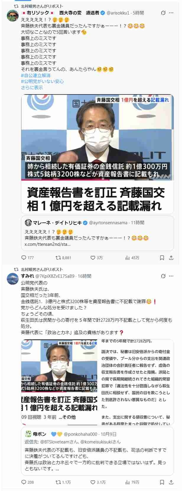 北村晴男「えええええ!?斉藤鉄夫代表も裏金議員だったんですかぁーーー!?