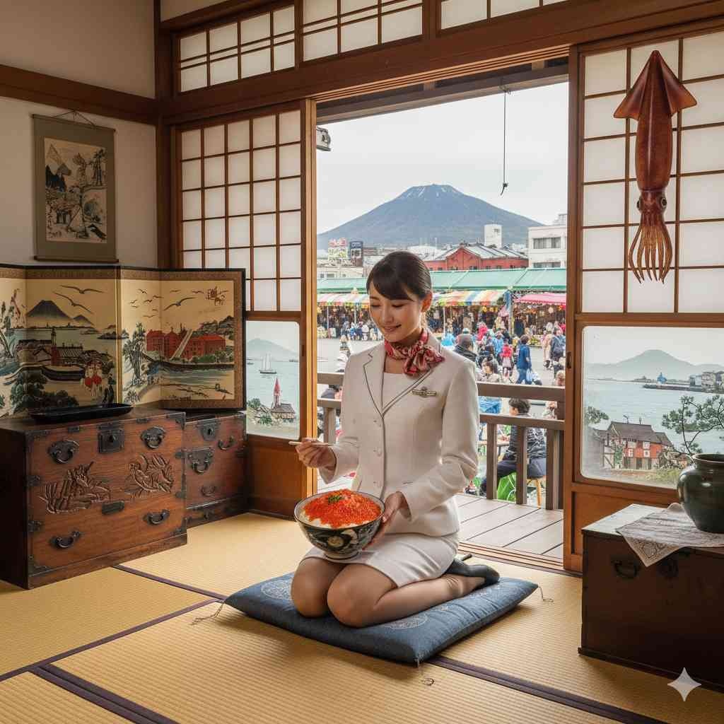 煮込んだイカのお腹にご飯を詰める。特に森町が有名だが、津軽海峡を挟んだ青森県の下北半島でも食べるらしい