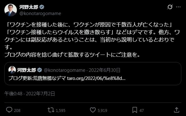 それよりワクチンを打たせるためにデマや脅し紛いのキャンペーンを打って半ば無理矢理打たせようとした政府の姿勢だよ