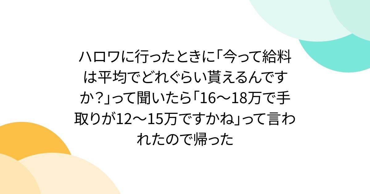 「今って平均どれぐらい貰えるんですか?」って聞いたら「16~18万で、手取りが12~15万ですかね」って言われたので