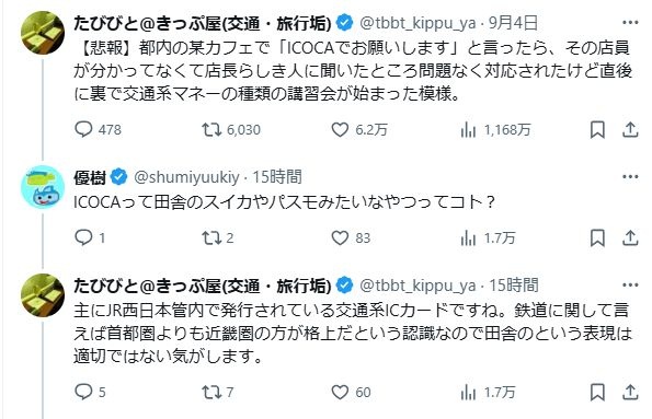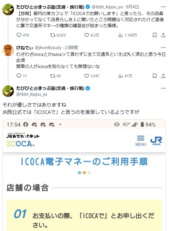 コンビニ店員でICOCA言われてわからないのも池沼だよ