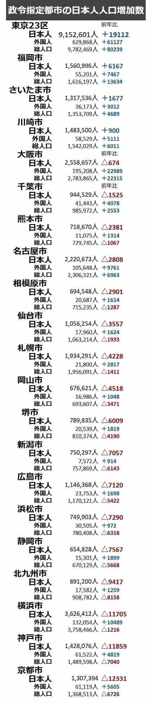 さいたま市は日本人を含め人口増加し